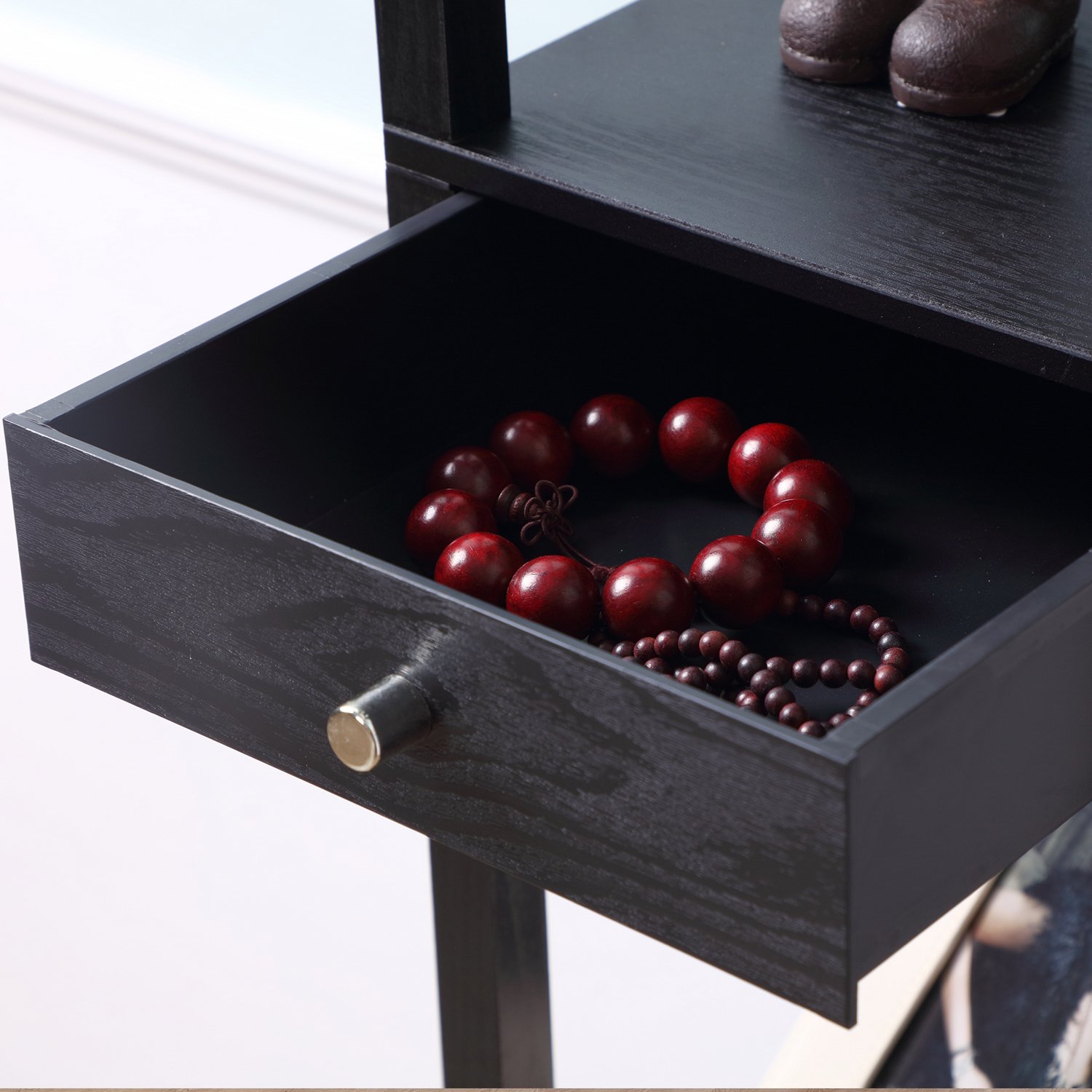 The dual shelf floor lamp adds a unique touch to the decor of your home. You can use the shelves to conveniently place your speakers. In this instructable i will explain how i made my shelf floor lamp. Yes, you could build it with any number of the shelves, they all attach the same way. Led floor lamp with end table and usb charging port, modern bedside nightstand lighting, attached side table with shelves for living room, bedroom, guest room, walnut.