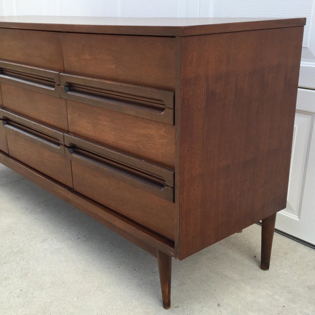 Lane Mid Century Walnut Dresser Credenza from marykaysfurniture.com 60's vintage founders super long 12 drawer walnut dresser mid century modern. The classic walnut woodgrain finish on the laminated mdf and particleboard will look gorgeous without the high price tag! An updated take on a retro look, this midcentury modern dresser adds a touch of vintage style to your home. Walker edison mid century modern grooved handle wood dresser bedroom storage drawer organizer closet hallway, 6 drawer, walnut brown (azr6dsldrwt) 4.0 out of 5 stars 666 $302.50 $ 302. Only 1 available and it's in 5 people's carts. Century furniture mid century walnut and cane highboy dresser armoire gentlemans chest. Wood grain laminate top is durable and protects against moisture and heat as well as normal use. 40 wide x 20 deep x 52.5 inches high add to cart.